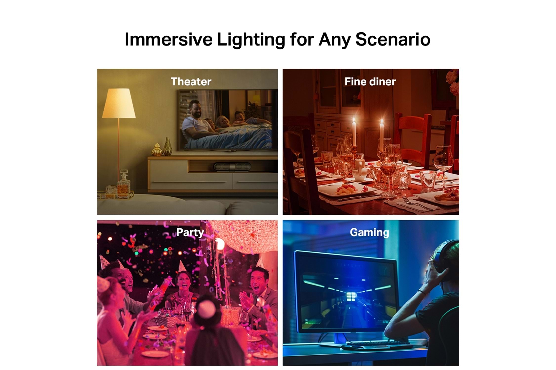 Çok renkli - Parlaklığı, ışık sıcaklığını ve renkleri (16.000.000 ton arasından seçim yapabileceğiniz) özelleştirerek günlük rutininiz veya etkinlikleriniz için kolayca senaryolar tasarlayın.