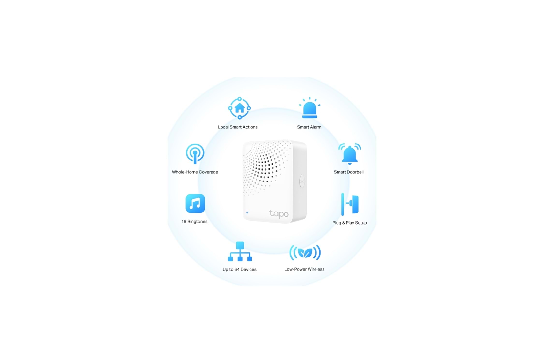 Akıllı Kapı Zili - Akıllı kapı zili sisteminizi oluşturmak için Tapo Smart Button ile eşleştirin, ayrıca aralarından seçim yapabileceğiniz 19 zil sesi ile senrayonuza uygun ayarlayabilirsiniz.