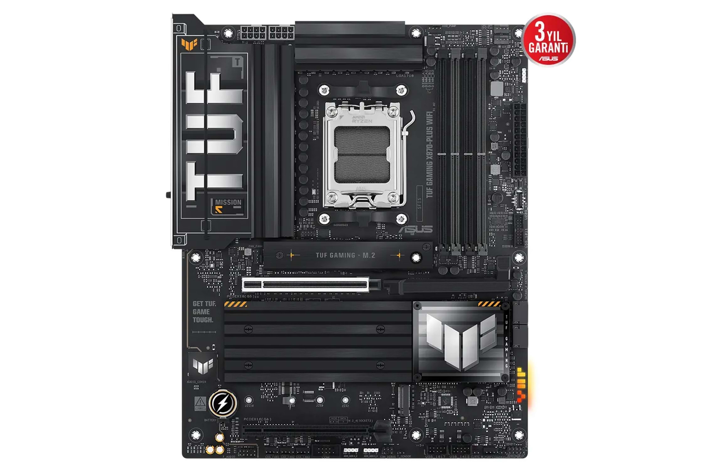 Alışveriş Sepetim ASUS TUF GAMING X870-PLUS WIFI, en yeni AMD Ryzen™ işlemcilerinin en önemli unsurlarını alıp oyunlara yönelik özellikler ve kanıtlanmış dayanıklılıkla bir araya getirir. Askeri sınıf bileşenler, gelişmiş güç çözümü ve kapsamlı soğutma sistemiyle donatılan bu anakart, oyun maratonları için kararlı ve sağlam performans ile beklentilerin ötesine geçer. TUF GAMING anakartlar, diğerlerinin başarısız olabileceği koşullarla başa çıkabileceklerini garantilemek için zorlu testlerden geçirilir. Bu platform, gelişmiş yapay zeka bilgisayarlarına ait uygulamaların talep ettiği güç ve bağlantıları ortaya koyar.