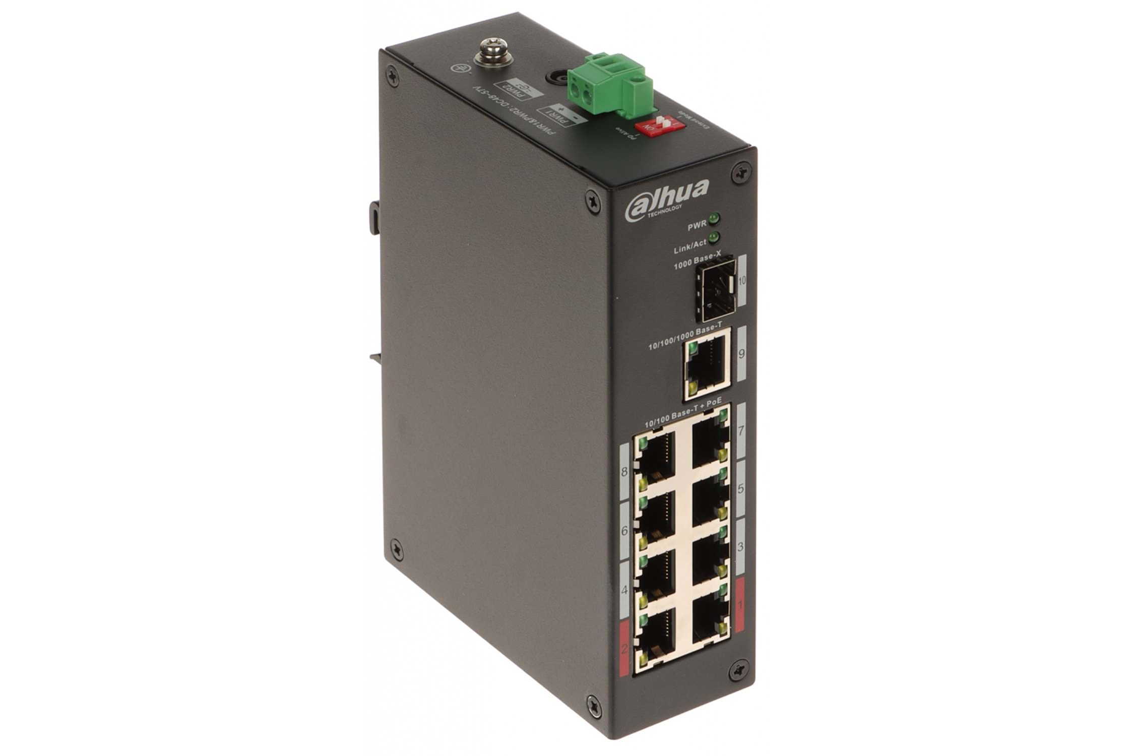 | Veri İletim Port | Port 1–8: 8 × RJ-45 10/100 Mbps (PoE) Port 9: 1 × RJ-45 10/100/1000 Mbps (Yukarı Bağlantı) Port 10: 1 × SFP 1000 Mbps (Yukarı Bağlantı) |